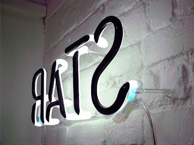 При засветке тонких букв или вывесок неоном могут возникать проблемы. Но неон предлагает решение - контражурная подсветка. Объемная буква устанавливается на дистанционном держателе. Неоновые детали, скрытые задней стенкой буквы и повторяющие ее контур, подчеркивают надпись исходящим рассеянным светом. Буквы могут быть очень маленькими